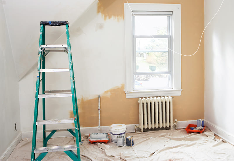 Een kamer die gerenoveerd wordt met renovatieverf.