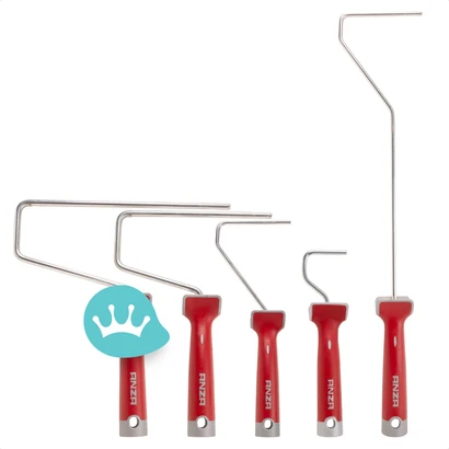 Stevige softgrip verfrolbeugel van professionele kwaliteit. Deze verfrolbeugels hebben een ergonomische softgrip handgreep, wat zorgt voor een stevige en comfortabele grip. Hierdoor krijg je geen last van pijnklachten bij langdurig gebruik. Dit is daarom dé verfrolbeugel waar de professional ook graag mee werkt. Wij hebben verschillende maten van de Anza Beugel Softgrip in ons assortiment, geschikt voor alle gangbare verfrollers.