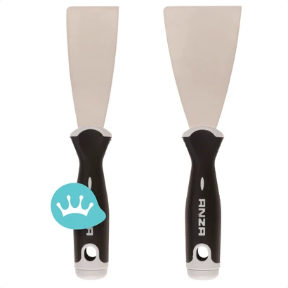 Soepel, roestvrijstalen plamuurmes. Het Anza Plamuurmes RVS zorgt voor een perfecte afwerking bij vulwerken. Het mes heeft één scherpe hoek, zodat je perfect in hoeken kunt werken. De andere hoek is afgerond zodat deze goed gebruikt kan worden om af te kitten. Het Anza Plamuurmes RVS heeft een softgrip handvat, waardoor het mes goed in de hand ligt en comfortabel werkt.